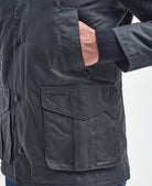 La Barbour Hereford Wax Jacket es una reinterpretación moderna de la clásica chaqueta encerada de la marca. Confeccionada en algodón encerado Thornproof de 6 oz, es resistente al agua y al viento, ofreciendo la protección necesaria en climas cambiantes.