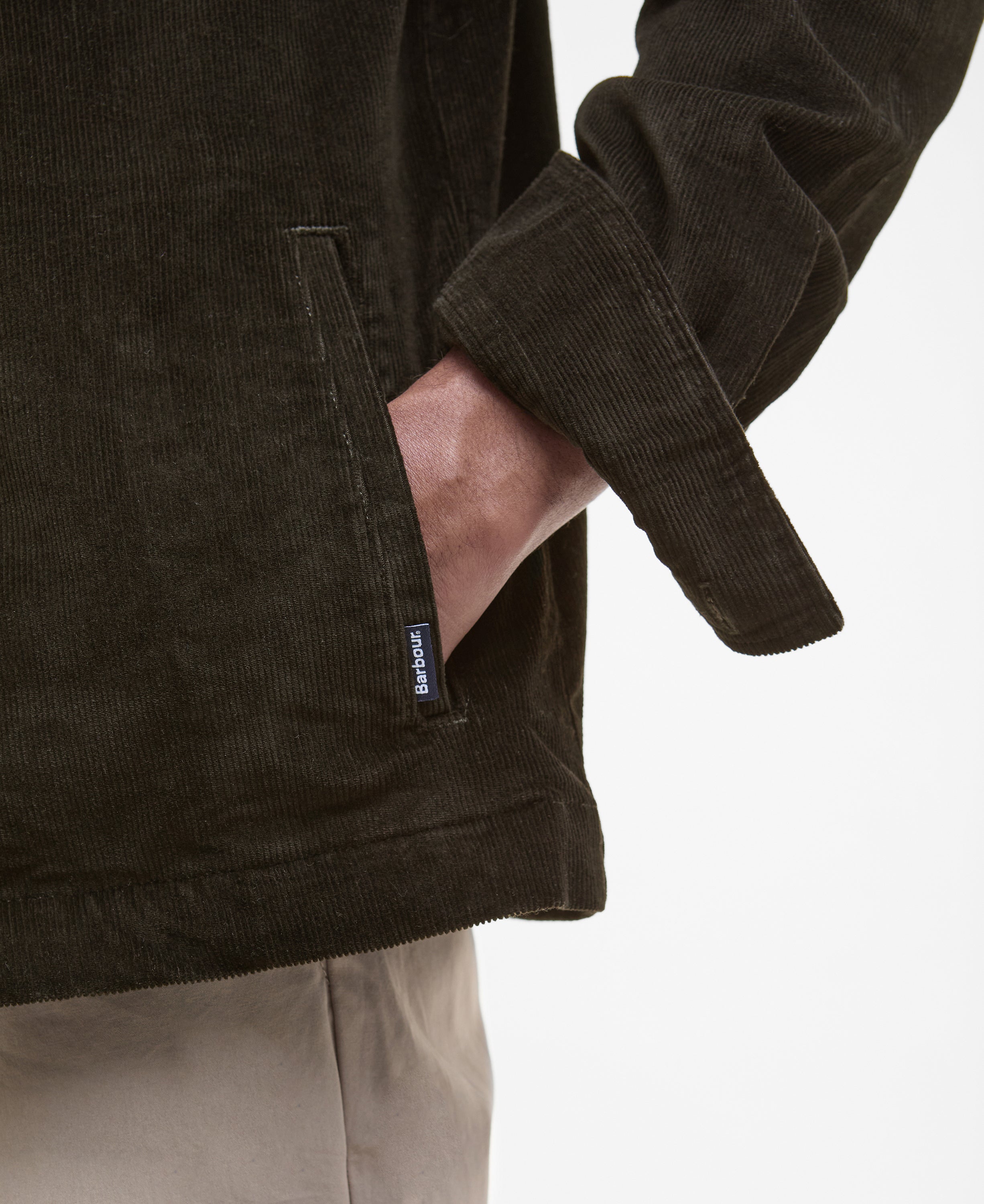 La Barbour Regular Cord Overshirt es una sobrecamisa de estilo clásico confeccionada en pana (corduroy), que aporta textura, calidez y un look sofisticado para el día a día. Su diseño versátil permite usarla como camisa o como capa ligera sobre poleras o sweaters durante el entretiempo.